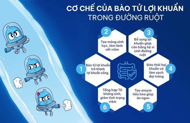 Khi gặp điều kiện thuận lợi, các bào tử này sẽ phát triển và trở thành các vi khuẩn có lợi cho đường ruột, giúp duy trì sự cân bằng của hệ vi sinh vật trong cơ thể.
