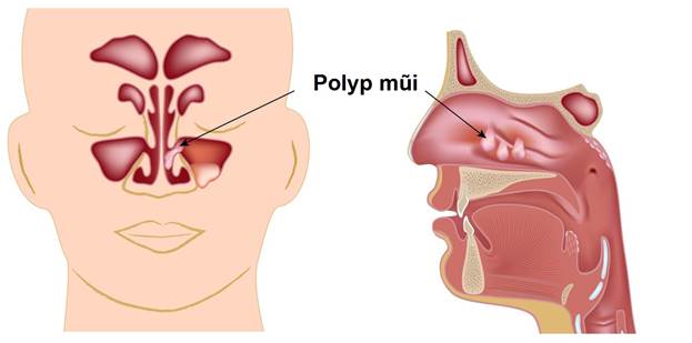 Polyp mũi là một khối mềm, không phải ung thư, phát triển trên niêm mạc mũi hoặc xoang do tình trạng viêm mạn tính gây ra. Nếu polyp có kích thước nhỏ thì hầu như không gây bất kỳ triệu chứng gì. Tuy nhiên, những polyp lớn có thể cản trở luồng khí thở và khiến bạn cảm thấy khó thở và giảm khả năng ngửi so với bình thường.
