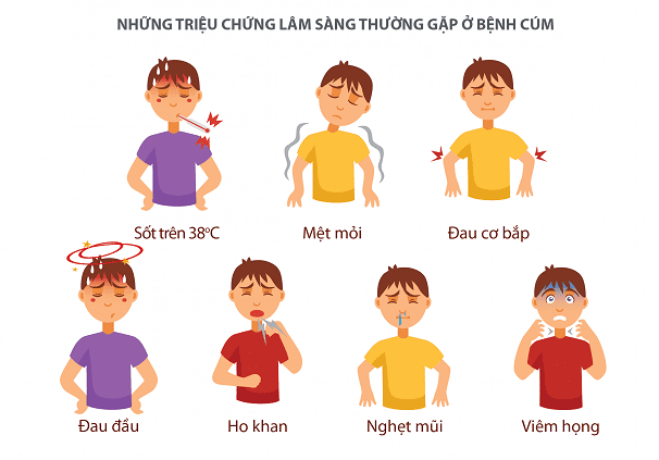 Cúm là một trong những bệnh nhiễm trùng đường hô hấp phổ biến, với biểu hiện sốt, đau đầu, đau cơ, mệt mỏi, sổ mũi, đau họng và ho.