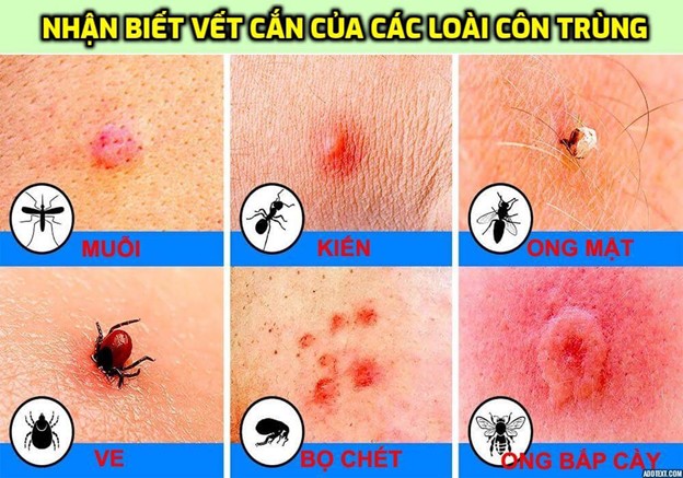 Một số loại côn trùng như muỗi, kiến, ong, ve, bọ chét... khi tần công da người có thể để lại vết sưng, đỏ, ngứa hoặc đau rát. Đây là phản ứng tự nhiên của cơ thể trước các chất lạ được côn trùng tiết ra khi đốt hoặc cắn.