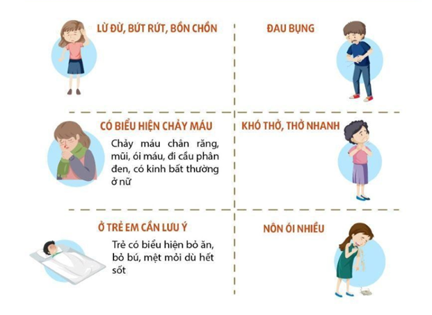 Dù sốt có thể đã giảm, nhưng nếu xuất hiện một hoặc nhiều các dấu hiệu dưới đây, cần đưa người bệnh đến bệnh viện ngay lập tức: