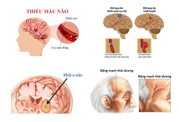 Thiếu máu não: Thiếu máu lên não dẫn đến thiếu oxy là nguyên nhân phổ biến hàng đầu gây ra đau đầu phải. Đau đầu do thiếu máu não thường diễn ra âm ỉ, ít khi đau dữ dội, nhưng kèm theo nhiều triệu chứng khác như choáng váng, suy giảm trí nhớ, ù tai, nhức mỏi vùng vai gáy.