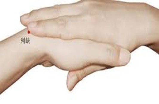 Dùng ngón tay cái của tay đối diện đặt lên vị trí huyệt Liệt Khuyết rồi day nhẹ theo vòng tròn.