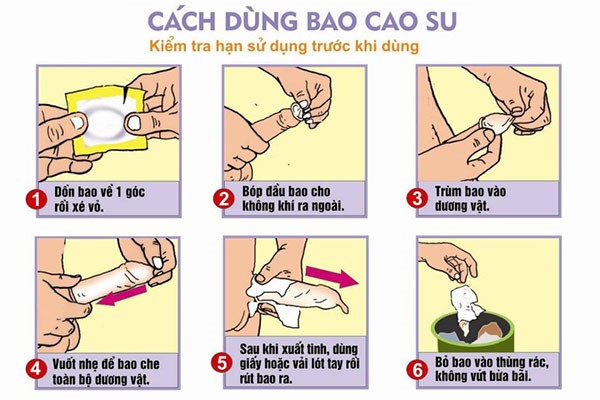 Để đảm bảo bao cao su phát huy tối đa công dụng, bạn cần lưu ý các bước sau khi mang bao cao su nam: