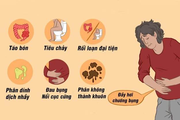 Rối loạn tiêu hóa: tiêu chảy và táo bón xen kẽ, khó tiêu, đầy bụng,..