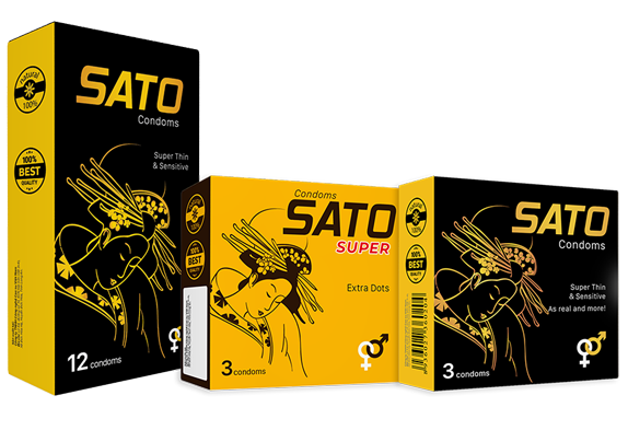 Loại trơn (Sato): 3 bao cao su/ hộp, 12 bao cao su/ hộp