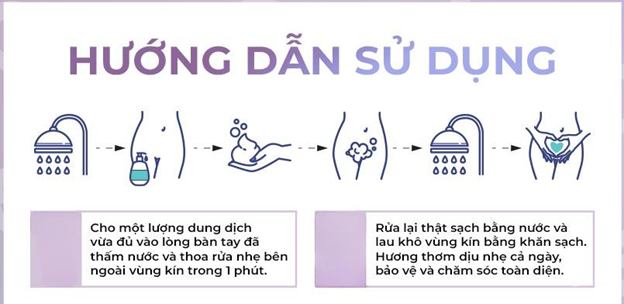 Dùng ngày một vài lần. Làm ướt vùng kín bằng nước sạch, lấy một lượng dung dịch vừa đủ (vài ml) thoa rửa đều, nhẹ vùng kín rồi rửa kỹ lại bằng nước sạch.