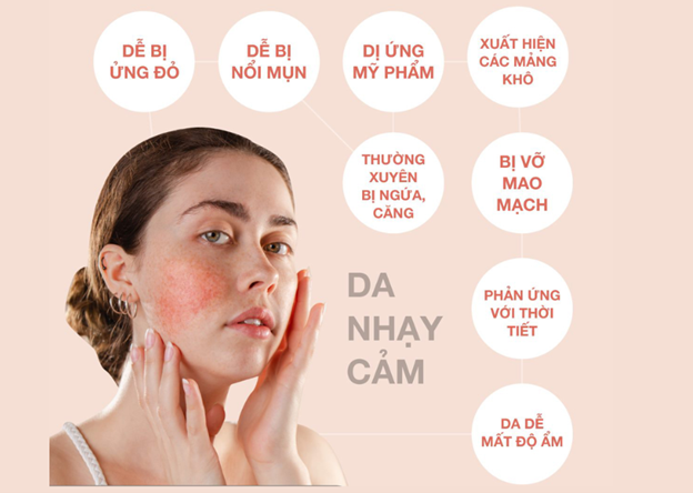 Da nhạy cảm là tình trạng da dễ bị kích ứng bởi các tác nhân bên trong và bên ngoài mà làn da thường không phản ứng. Hàng rào bảo vệ tự nhiên của da bị suy yếu, khiến các đầu dây thần kinh dễ bị kích thích hơn, dẫn đến các phản ứng khó chịu.