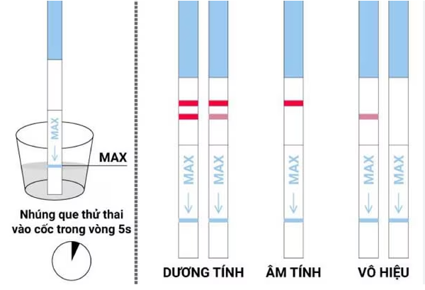 - Các trường hợp có thể cho kết quả âm tính giả: Mới có thai nồng độ HCG còn thấp (nên thử lại sau đó ít nhất 48 giờ), thai ngoài tử cung.