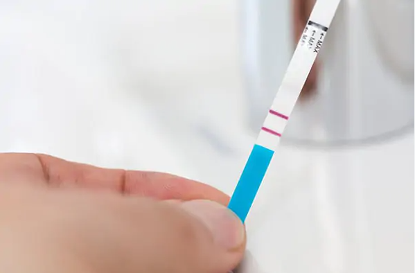 + Nếu có 2 vạch ngang màu hồng xuất hiện trên que thử: bạn đã có thai (dương tính).