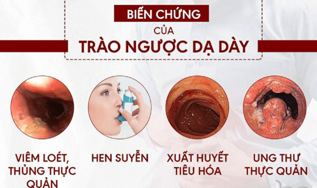 Nếu không được điều trị kịp thời, tình trạng trào ngược có thể tiến triển thành các vấn đề: