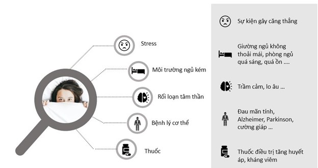 Mất ngủ mãn tính: Do căng thẳng, lo âu, thay đổi môi trường sống hoặc các vấn đề sức khỏe khác.