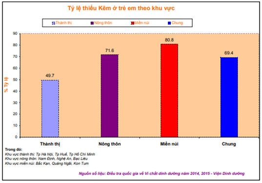 Tỷ lệ thiếu kẽm ở trẻ em rất cao, cả ở khu vực thành thị và nông thôn, miền núi