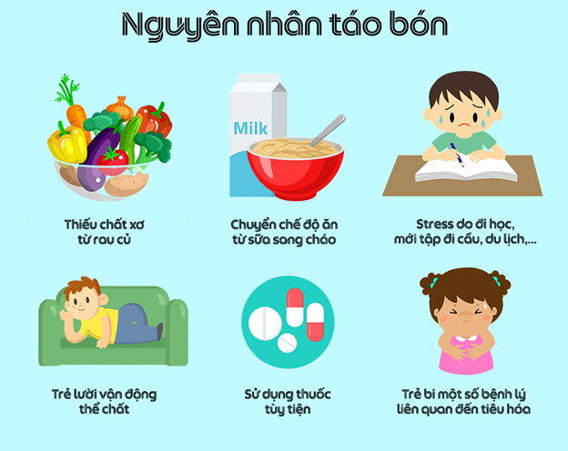 Có rất nhiều nguyên nhân có thể dẫn đến tình trạng trẻ bị táo kéo dài, trong đó phổ biến nhất là do: