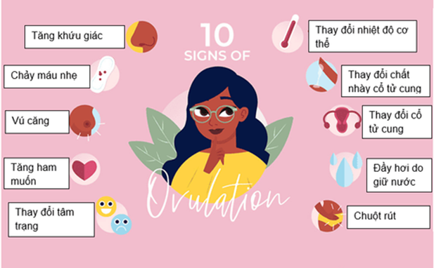 Ngay sau khi rụng trứng, nhiệt độ cơ thể cơ bản (BBT) tăng khoảng 0,3 – 0,5°C và duy trì ở mức cao cho đến khi có kinh nguyệt. Bạn có thể đo mỗi sáng bằng nhiệt kế chuyên dụng để theo dõi.