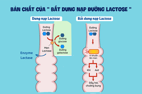 Cơ thể không thể tiêu hóa đường lactose có trong sữa và các sản phẩm từ sữa, gây ra các triệu chứng tiêu hóa như tiêu chảy, đầy hơi.