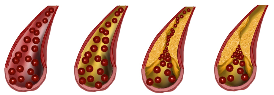 Nếu các động mạch chỉ bị hẹp ít, chưa đến một nửa, nghĩa là lòng một còn thông được tương đối, máu vẫn chảy dễ dàng, chưa có vấn đề gì. Nhưng nếu các mảng xơ vữa tiếp tục lớn lên, chít hẹp động mạch hơn, đến 60-70% thì dòng máu chảy bị kém đi, không đủ cung cấp cho cơ quan đích. Chẳng khác gì ống dẫn nước máy lâu ngày bị lắng đọng vôi, nước chảy yếu đi, lâu dần dẫn đến tắc hẳn.