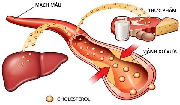 Ảnh: Mảng xơ vữa tạo thành từ các hạt cholesterol xấu trong thực phẩm và chất chuyển hóa tại gan.