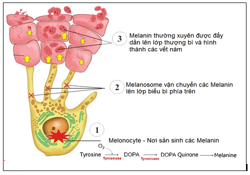Quá trình tổng hợp melanin được diễn ra rất nhanh nhưng lại phân hủy chậm nên việc nám da hình thành dai dẳng trên vùng da mặt là một điều dễ hiểu.