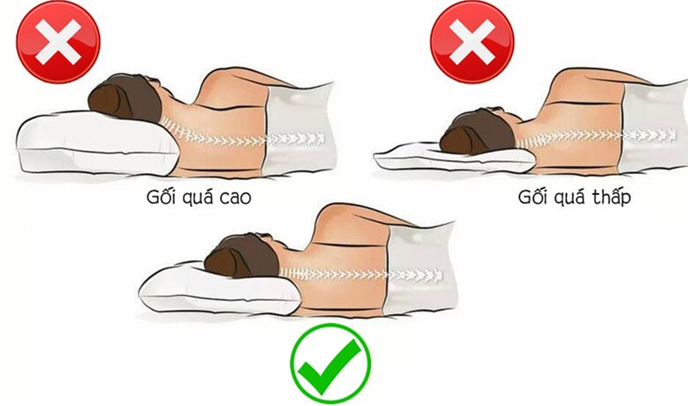 Lựa chọn gối nằm với độ cao vừa phải, mềm mại và mang lại cảm giác thoải mái nhất khi ngủ để tránh căng thẳng vùng cổ vai.