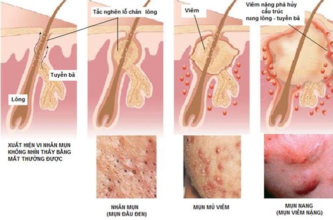 Mụn trứng cá khi bị tấn công bởi vi khuẩn gây nhiễm trùng và hình thành các u nang.