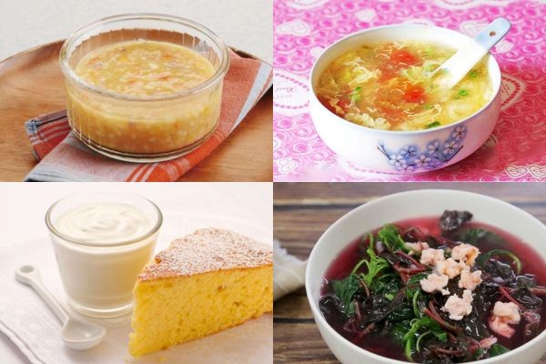 Cho trẻ ăn các món lỏng, mềm như cháo, súp, canh, tránh đồ chiên rán hoặc quá ngọt.