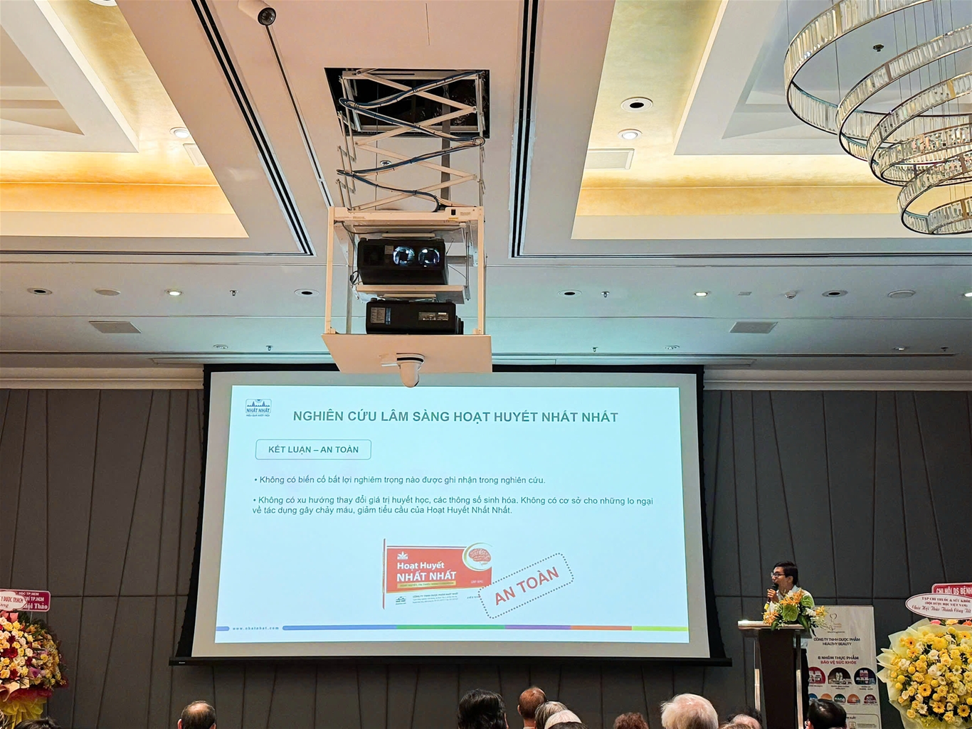 Tại hội thảo, Công ty Nhất Nhất đã giới thiệu báo cáo nghiên cứu lâm sàng về tính an toàn và hiệu quả của sản phẩm Hoạt Huyết Nhất Nhất, được thực hiện trên đối tượng bệnh nhân thật trong điều kiện kiểm soát chặt chẽ. Kết quả cho thấy sản phẩm giúp cải thiện rõ rệt tình trạng mất ngủ, đau đầu, suy giảm trí nhớ, rối loạn giấc ngủ, tê bì tay chân mà không gây tác dụng phụ.