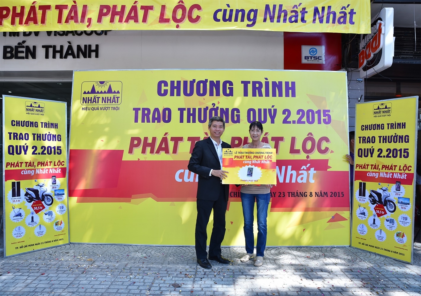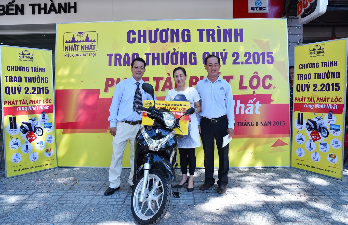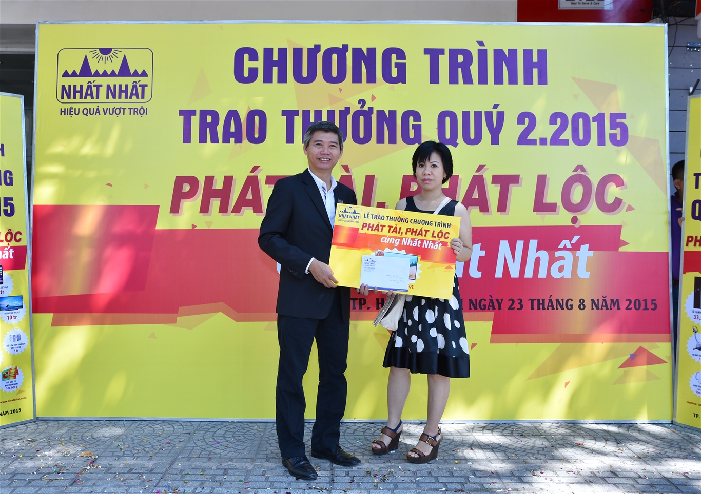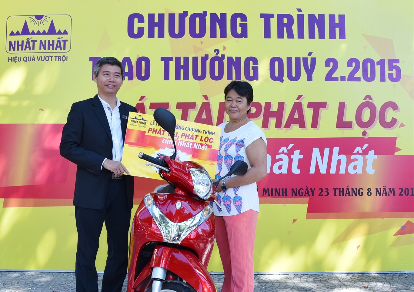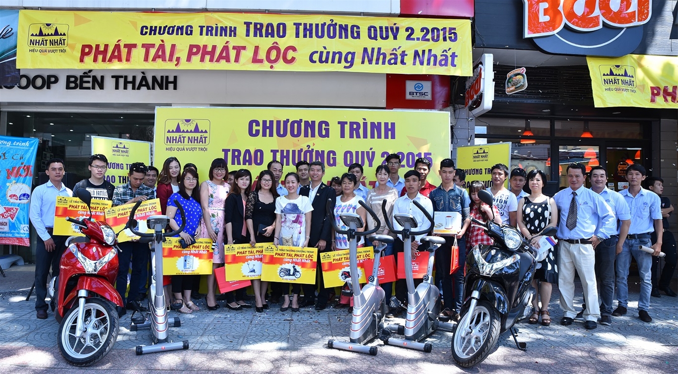Ngày 23.8.2015 tại TP Hồ Chí Minh, Công ty Nhất Nhất đã long trọng tổ chức chương trình trao thưởng cho các Nhà thuốc khách hàng của Công ty. Căn cứ vào kết quả kinh doanh của Quý 2.2015, các nhà thuốc đã vui mừng nhận được các phần thưởng có giá trị lớn như xe máy Honda SH Mode, Điện thoại Iphone6 Plus, Tivi Sony 40 inchs, Tủ lạnh Hitachi Side by side và hàng trăm giải thưởng khác…