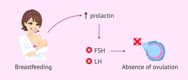 Sự kích thích núm vú xảy ra trong thời gian cho con bú kích thích sản sinh hormone prolactin. Sự có mặt của hormone này gây ức chế đối với quá trình rụng trứng và ngăn chặn dòng chảy kinh nguyệt.
