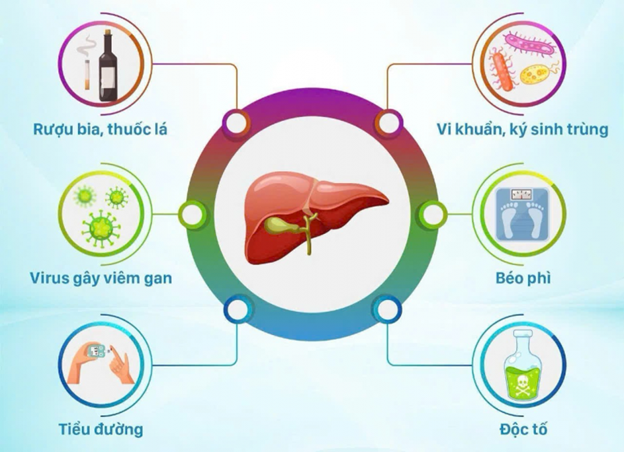 Nhiễm độc gan có thể xuất phát từ nhiều nguyên nhân, trong đó phổ biến nhất là: