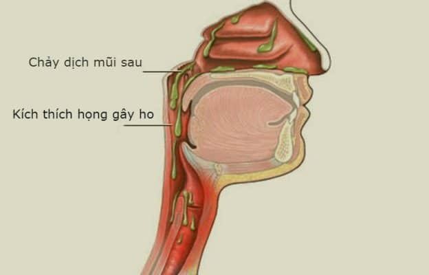 Ho do dịch chảy mũi sau xuống cổ họng được gọi là hội chứng ho đường hô hấp trên. Cơ chế gây ho mãn tính do chảy dịch mũi sau được giải thích như sau: