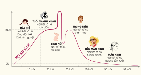 Phụ nữ suy giảm nội tiết tố, phụ nữ tiền mãn kinh, mãn kinh có các triệu chứng bốc hỏa, mất ngủ, sạm da, yếu sinh lý do suy giảm nội tiết tố nữ.