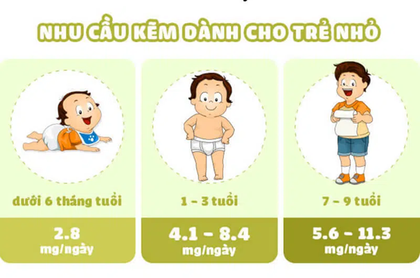 Nhu cầu kẽm ở trẻ nhỏ trong từng độ tuổi