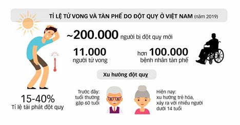 Tỷ lệ tử vong và tàn phế do đột quỵ hàng năm ở Việt Nam (2019)