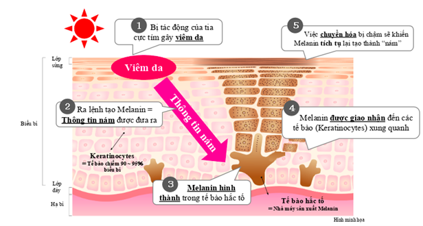 Nám được hình thành do sự tăng sinh của các tế bào sắc tố melanin trên da.