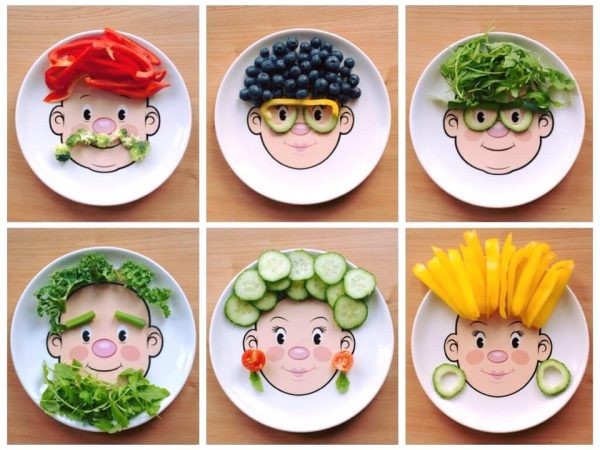Trang trí đĩa ăn bằng các loại rau củ để tạo ra những món ăn bắt mắt, nhiều màu sắc sẽ khiến trẻ thích thú và có cảm giác muốn thử.