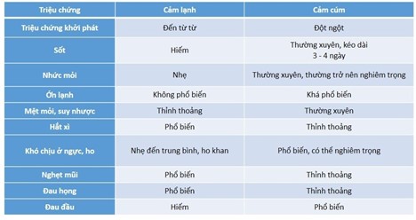 Triệu chứng cảm lạnh tượng tự và thường bị nhầm với cảm cúm