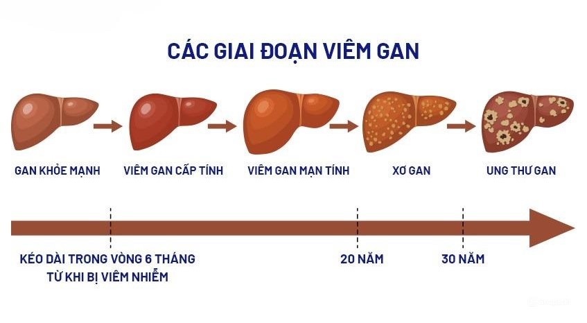 Viêm gan cấp tính kéo dài trên 6 tháng sẽ tiến triển sang giai đoạn mãn tính với các tổn thương diễn ra âm thầm trong gan.