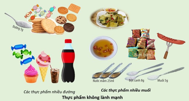 Ví dụ: xúc xích, thịt xông khói, đồ hộp, mì ăn liền, gà rán, khoai tây chiên…