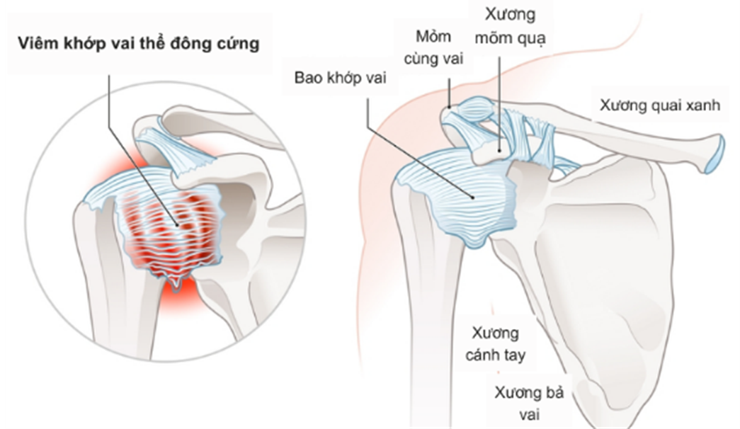 Viêm quanh khớp vai thể đông cứng là tình trạng bao khớp bị viêm và co rút, khiến vai co cứng, đau nhức và gần như mất khả năng vận động. Việc hiểu đúng về bệnh lý này sẽ giúp phát hiện sớm và điều trị bệnh hiệu quả.